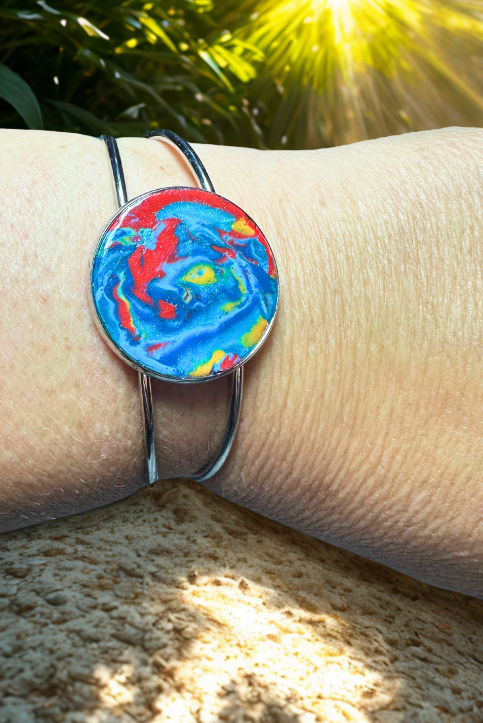 Embrace the cosmos with our unique Cosmic Current Bracelet. Each handmade piece is one of a kind and features a silvery finish. With its adjustable design, this bracelet is perfect for any wrist. Connect with the stars and add a touch of celestial style to your look.