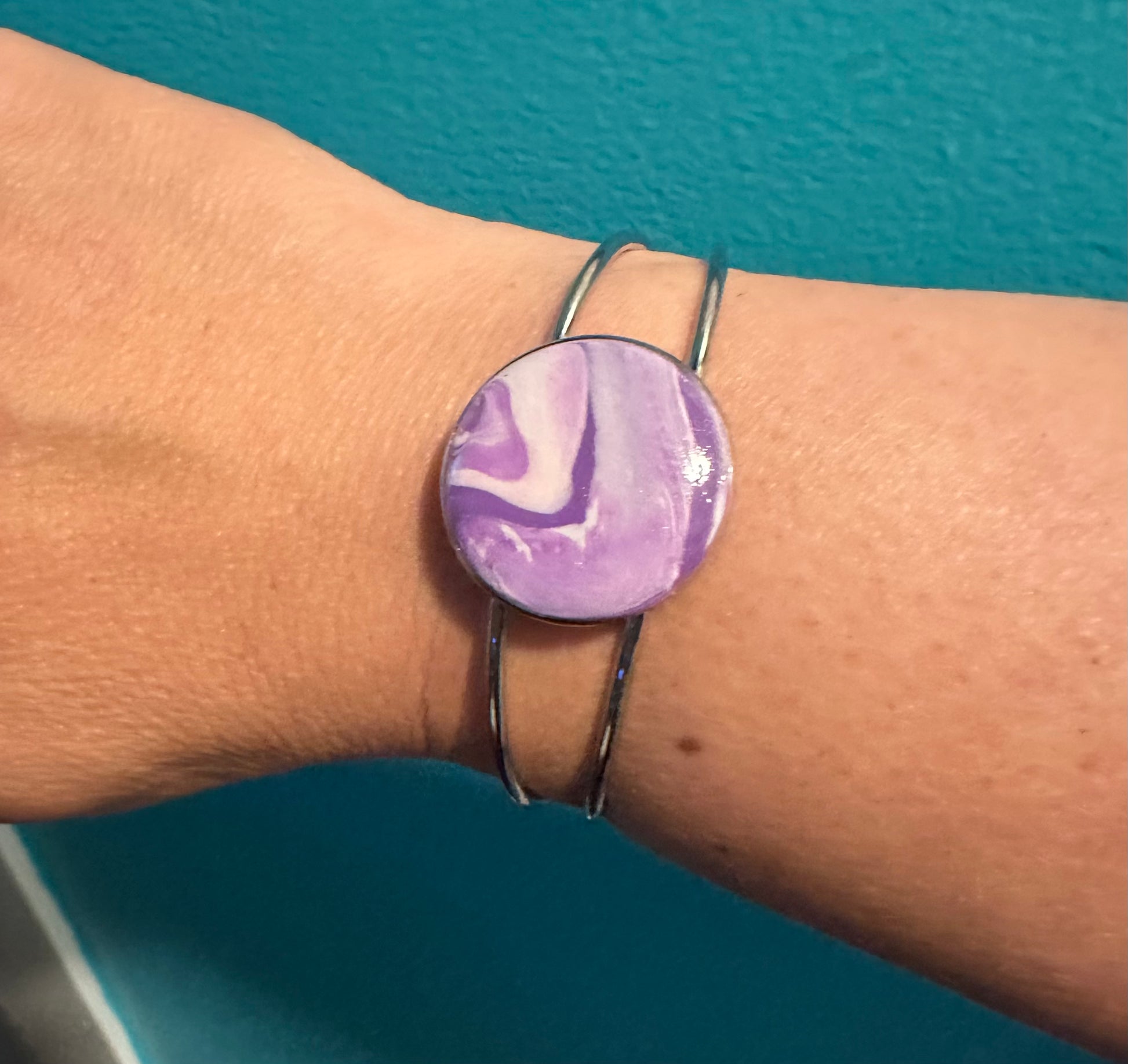 "Get ready to add a swirl of unique charm to your wrist with the Dream Swirl Bracelet. Handcrafted by the Boujee Bohos, this adjustable cuff is made with polymer clay and is truly one of a kind. Perfect for those who love to stand out!"