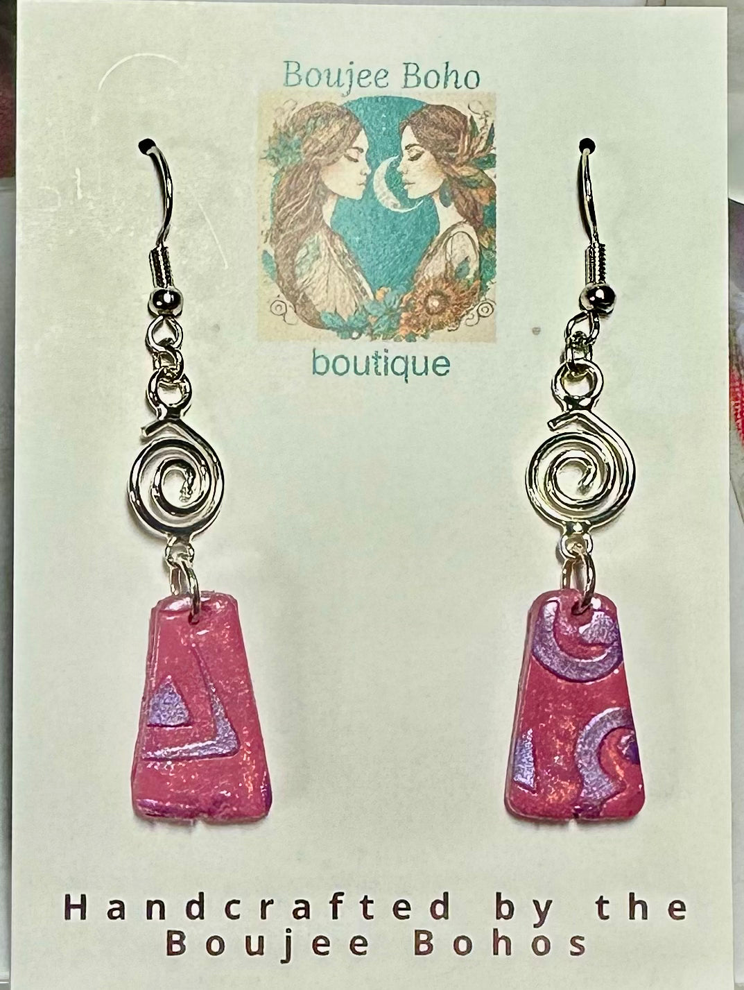 "These handmade polymer clay earrings are as light as a feather, making them perfect for daily wear without sacrificing style. Bring some playful charm to your outfit with the I Love Pink Earrings. Lightweight and handmade with love, these earrings are sure to become your new favorite accessory!"