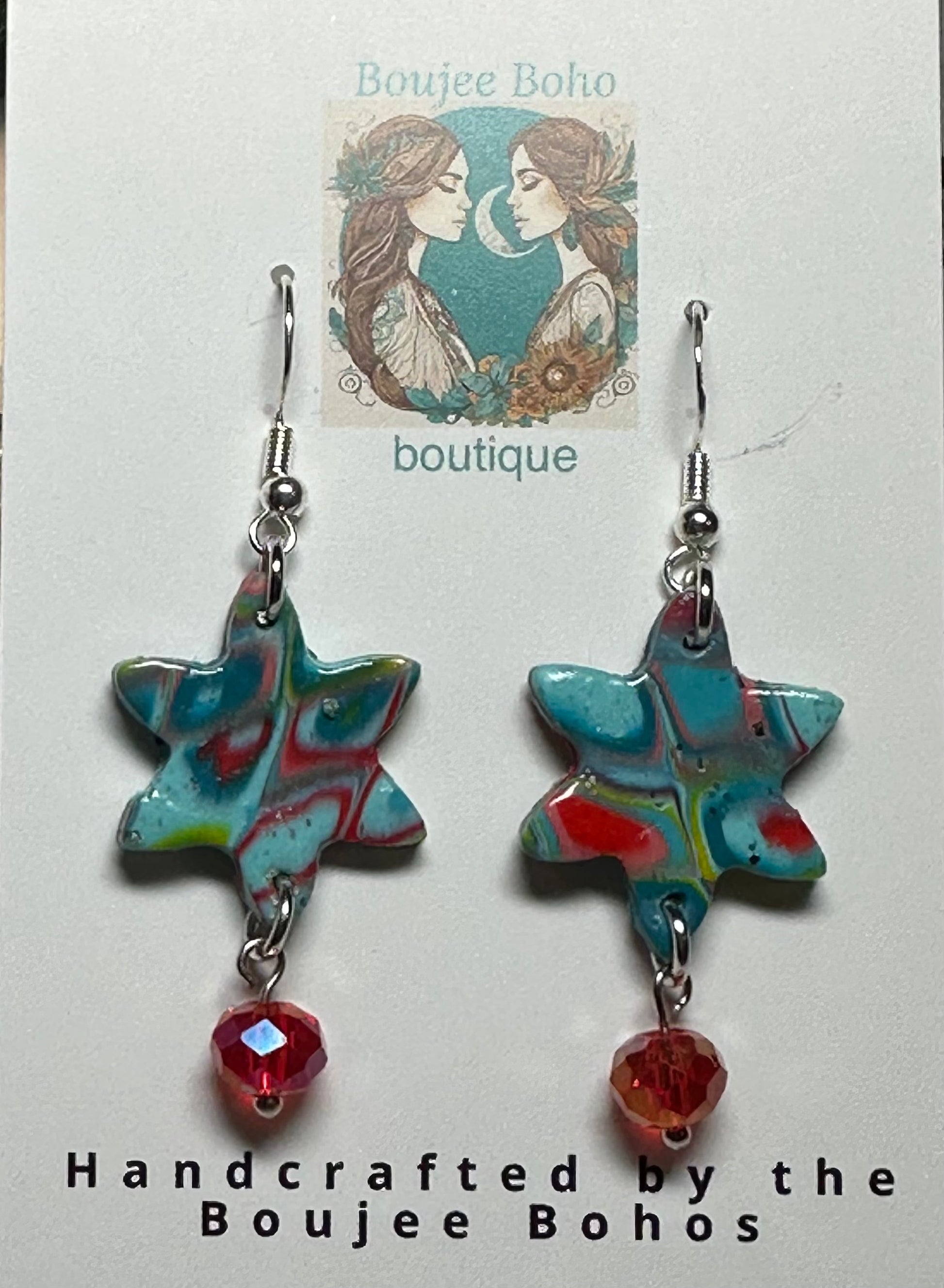 Add a playful touch to your outfit with these Retro Star Earrings. Made from lightweight polymer clay, each pair is uniquely handmade and features a fun bead dangle in a vibrant red. Perfect for adding a pop of color and personality to any look.